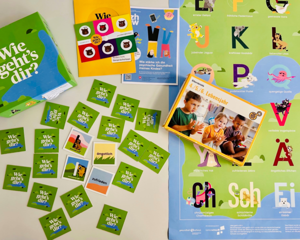 Hier finden Sie Informationen zu den kostenlosen attraktiven Materialien für Schwyzer Schulklassen des Zyklus I und ausserschulische Betreuungseinrichtungen, um die psychische Gesundheit von Kindern zu stärken. Mit dem Memo-Spiel und dem Kreide-Spass werden die Lehr- und Betreuungspersonen vom Zyklus I eingeladen, mit den Kindern über Gefühle zu sprechen. Insgesamt stehen 300 Emotionen-Boxen zur Verfügung.