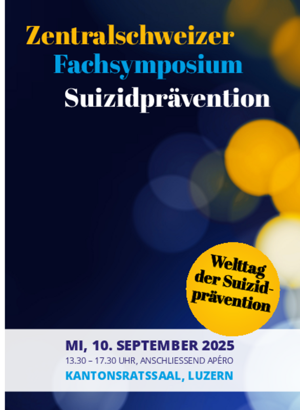 1. Zentralschweizer Fachsymposium Suizidprävention Die Kantone Luzern, Nidwalden, Obwalden, Schwyz, Uri und Zug setzen gemeinsam ein sichtbares Zeichen für Enttabuisierung, Unterstützung und konkrete Hilfe bei Suizidgedanken. Am 10. September fand das 1. Zentralschweizer Fachsymposium zum Thema Suizidprävention mit 170 Teilnehmenden statt.Detailliertes Programm Präsentationen (PDF)