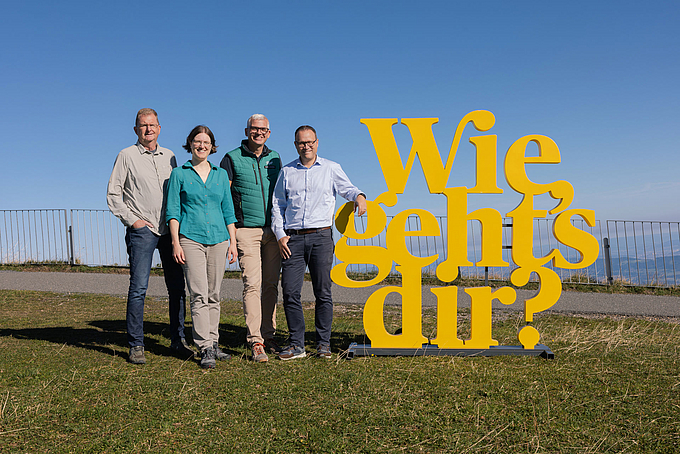 Die Kampagne «Wie geht’s dir?» fördert das seelische Wohlbefinden, baut Tabus ab und macht Unterstützungsangebote sichtbar. Mit der gut sichtbaren «Wie geht’s dir?»-Skulptur und dem spielerischen Glücksrad laden Sie Menschen niederschwellig dazu ein, ihre mentale Gesundheit zu stärken. Begleitende Materialien wie Plakate, Flyer, Informationsbroschüren, Postkarten für Gross und Klein, eine App sowie feine Schöggeli mit QR-Code liefern alltagsnahe Tipps und weiterführende Informationen. Setzen Sie als Gemeinde, touristischer Ort oder Shopping-Center ein starkes Zeichen für Wohlbefinden und mentale Gesundheit – und bestellen Sie Skulptur und Glücksrad kostenlos.KontaktPractice-Beispiel: RIGI Vom 26. August bis 21. September 2025 war die Kampagne «Wie geht’s dir?» an den Tal- und Bergstationen der RIGI BAHNEN präsent. Die Skulptur stand auf dem Hochperron im Bahnhof Goldau, das Glücksrad bei der Bergstation Rigi Kulm. Ergänzend wurden in den Restaurants und an den Kassen Schöggeli verteilt und Informationsbroschüren sowie Postkarten angeboten. Am 19. September 2025 diskutierten Vertreterinnen und Vertreter aus Politik, Tourismus, Medizin und Gesundheitsförderung auf der Rigi Kulm, wie die psychische Gesundheit im Kanton Schwyz gestärkt werden kann. Die Aktion erzielte grosse Aufmerksamkeit und erreichte potenziell rund 67’000 Gäste.Zeitungsartikel, Bote der Urschweiz, September 2025